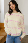 Say hello to Navy Valentine Ribbed Knit Sweater—effortless, everyday style with comfort built in. This white knit sweater is romantic with lavender heart pattern. The ribbed knit fabric is textured and stylish. Relaxed fit style with round neck, drop shoulder details. Very soft and warm for a comfy experience. Material: 65%Acrylic+35%Polyamide.👉 True-to-size fit — order your regular size with confidence!
