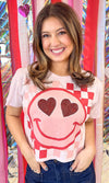 Valentine Sequin Smiley Graphic Crop Top T-Shirt